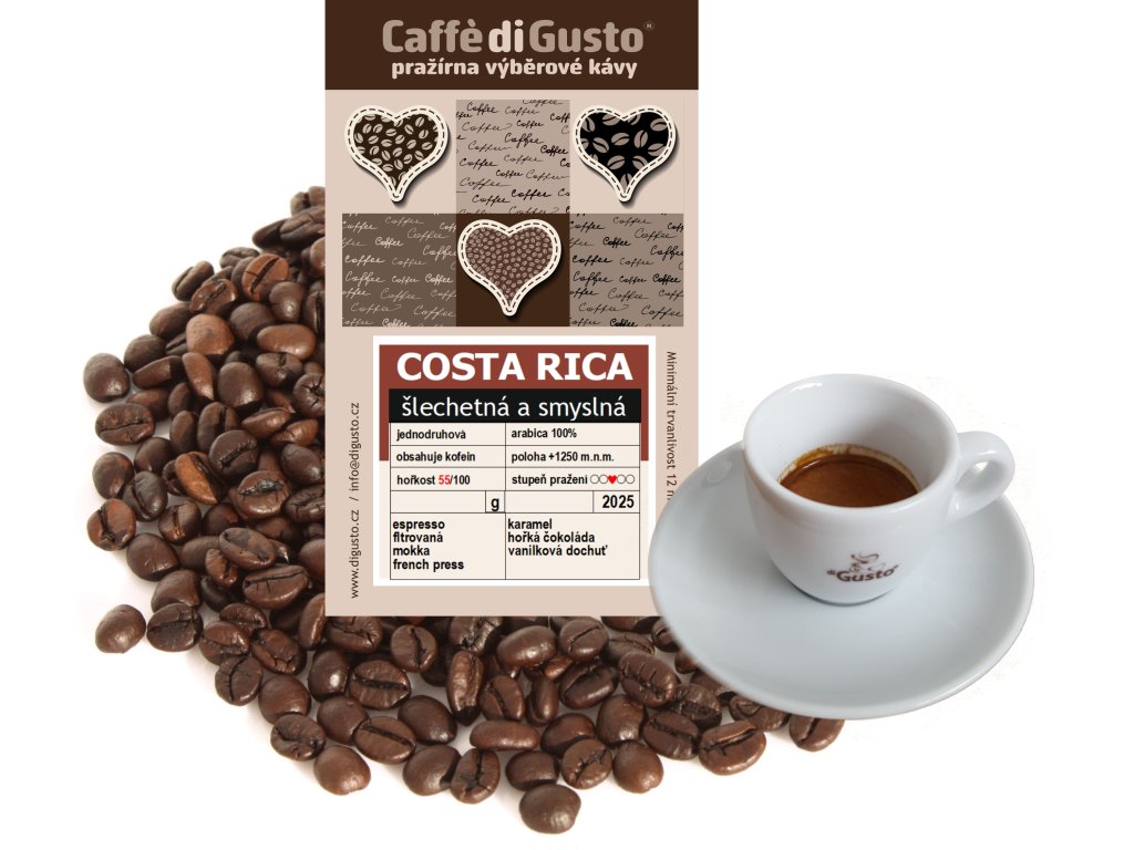 Naše COSTA RICA roste mezi 1250 - 1650 m.n.m. Má lahodnou čokoládovo-karamelovou chuť, vyváženou aciditu s jemnou vanilkovou dochutí.